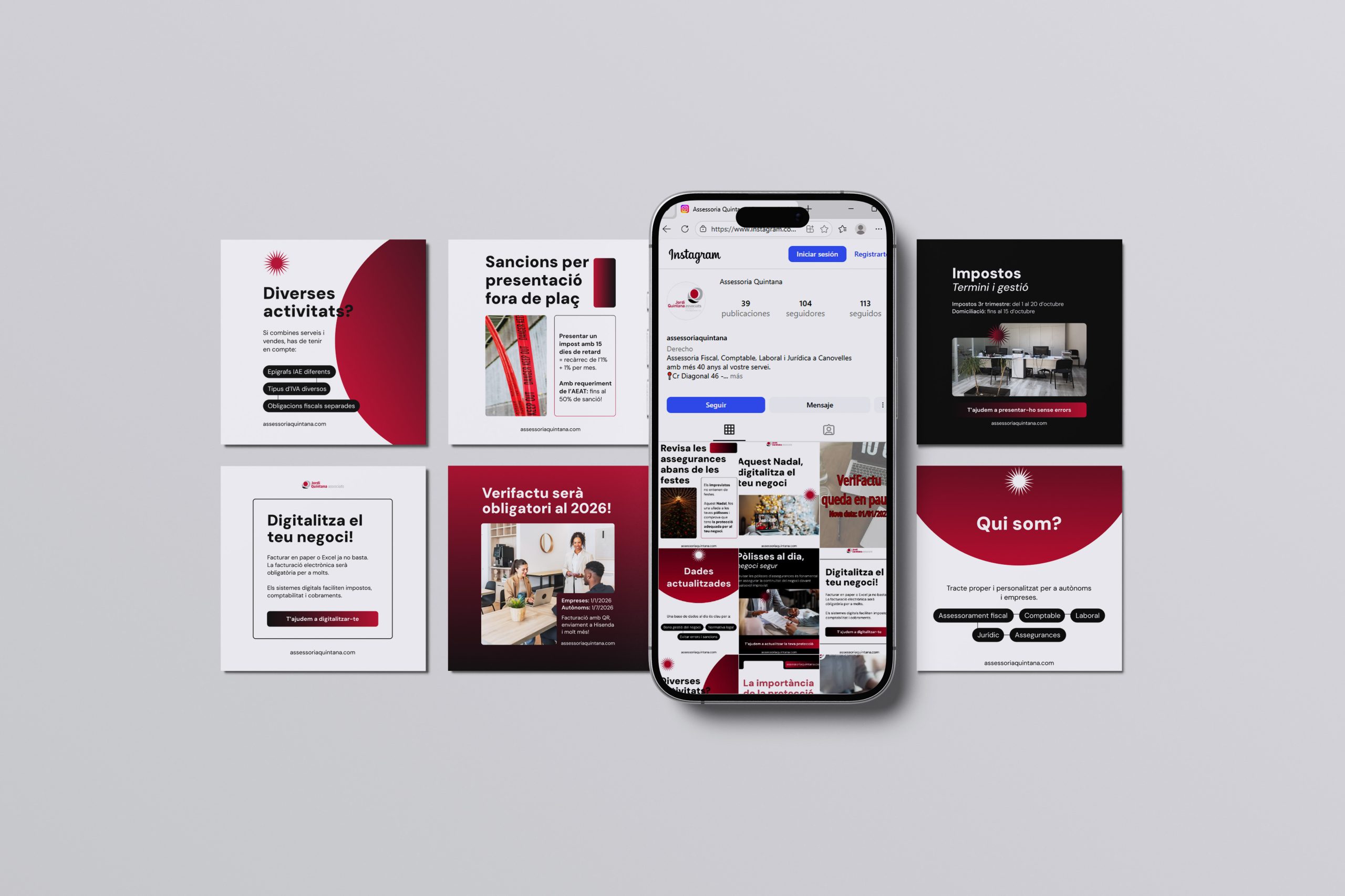 Assessoria Quintana es una asesoría especializada en servicios fiscales, laborales y contables para empresas y autónomos. Con una trayectoria consolidada y un trato cercano, la marca apuesta por una presencia digital que refuerce la confianza, facilite el acceso a la información y mantenga una comunicación directa con sus clientes.