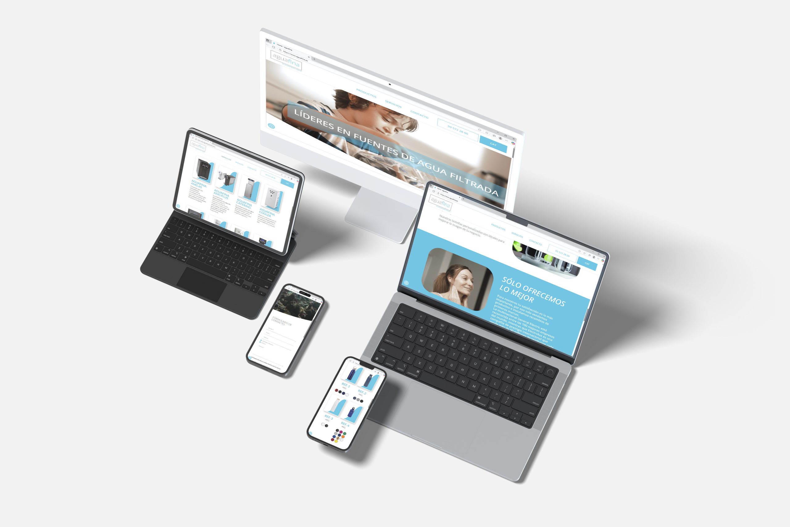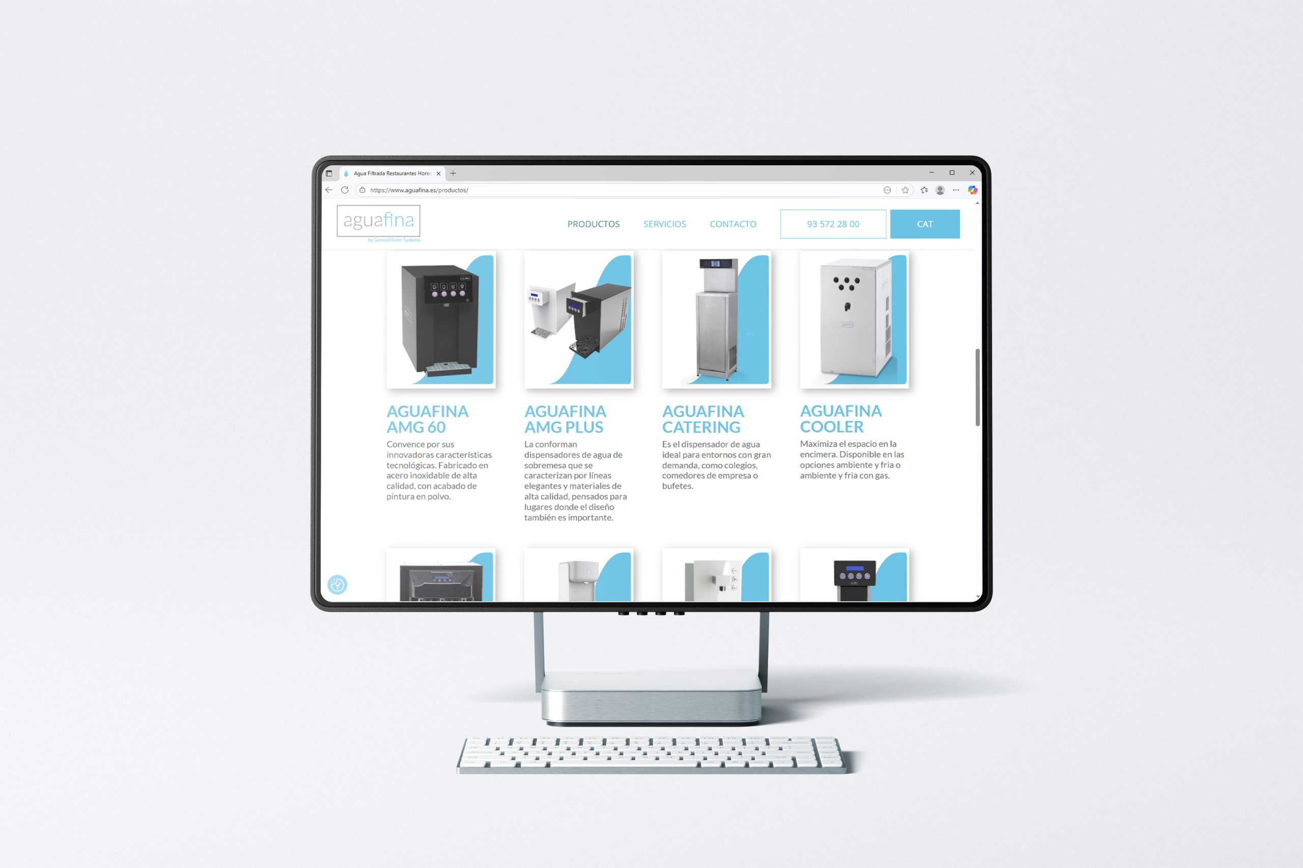El lloc d’AguaFina destaca per la seva presentació clara i fàcil de navegar, oferint un ampli catàleg de productes de fonts d’aigua adaptades a diferents entorns, des d’oficines fins a grans espais com escoles o indústries.