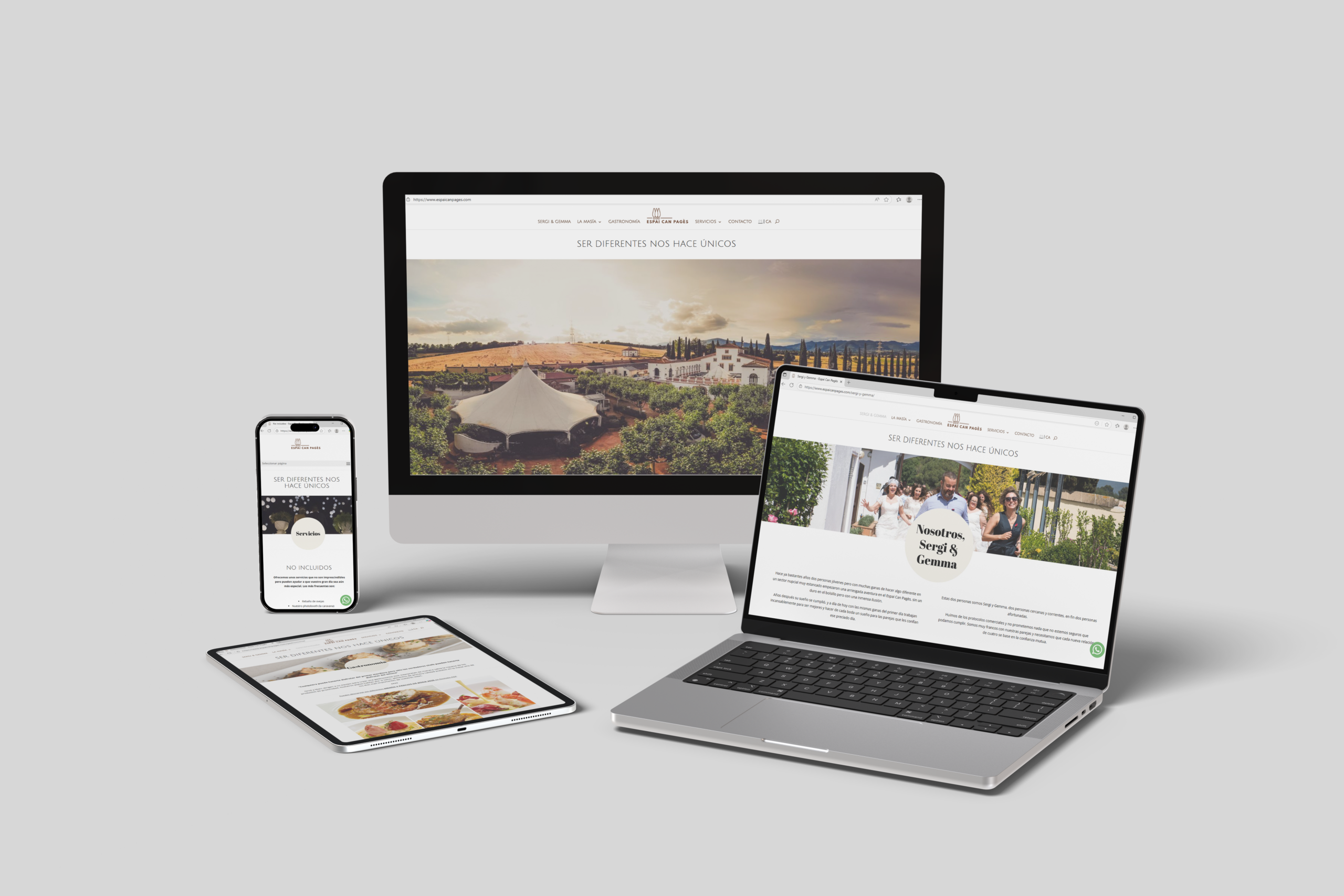 El repte consistia a dotar el web d’una presència digital que transmetés l’atmosfera d’elegància, natura i personalització del lloc sense perdre funcionalitat ni claredat de navegació. Era clau assegurar que cada visitant comprengués la singularitat de l’espai i sentís que es tracta d’un escenari adaptat a la seva visió de l’esdeveniment.