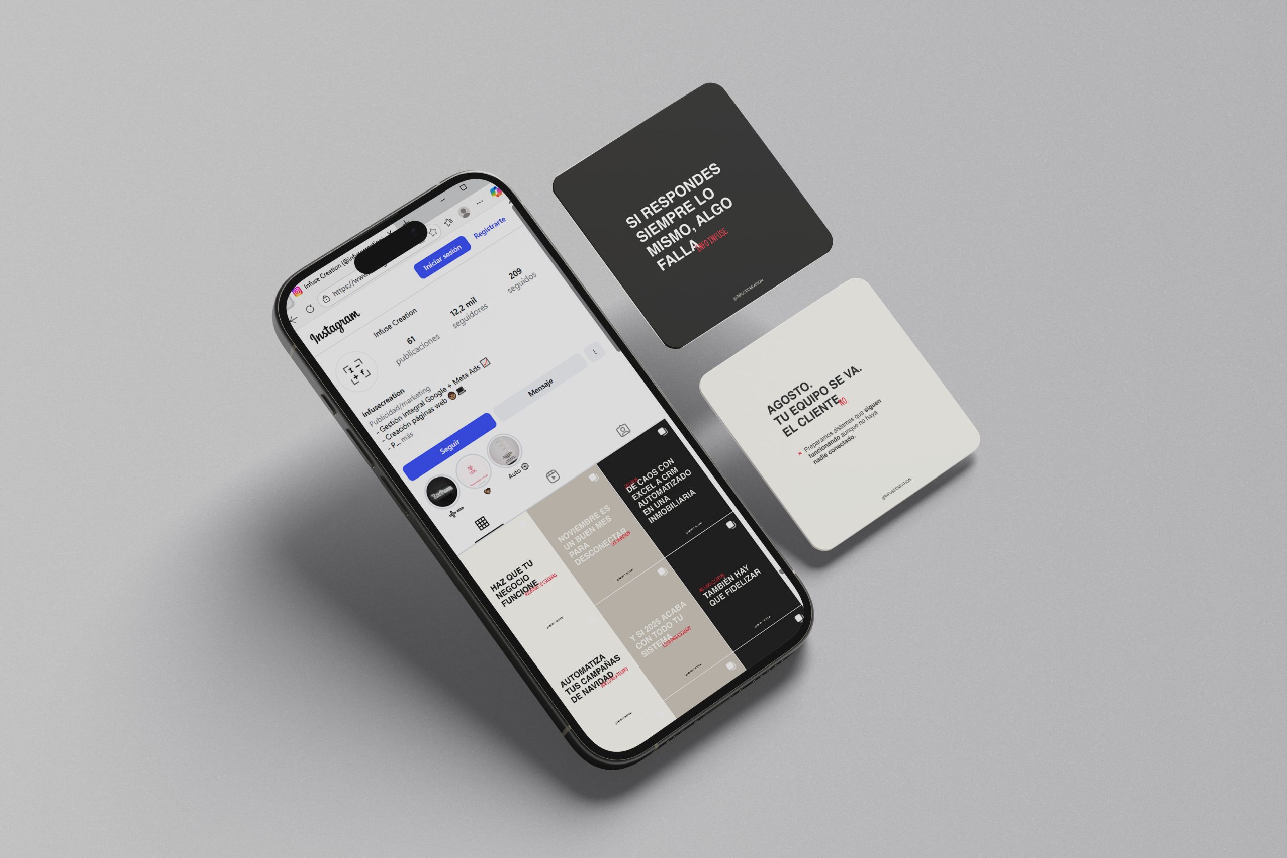 Infuse Creation és un estudi especialitzat en producció de contingut visual, fotografia, vídeo i branding. La seva presència a les xarxes havia de reflectir qualitat, estil i coherència, mostrant projectes de manera atractiva i potenciant la connexió amb la seva audiència creativa.